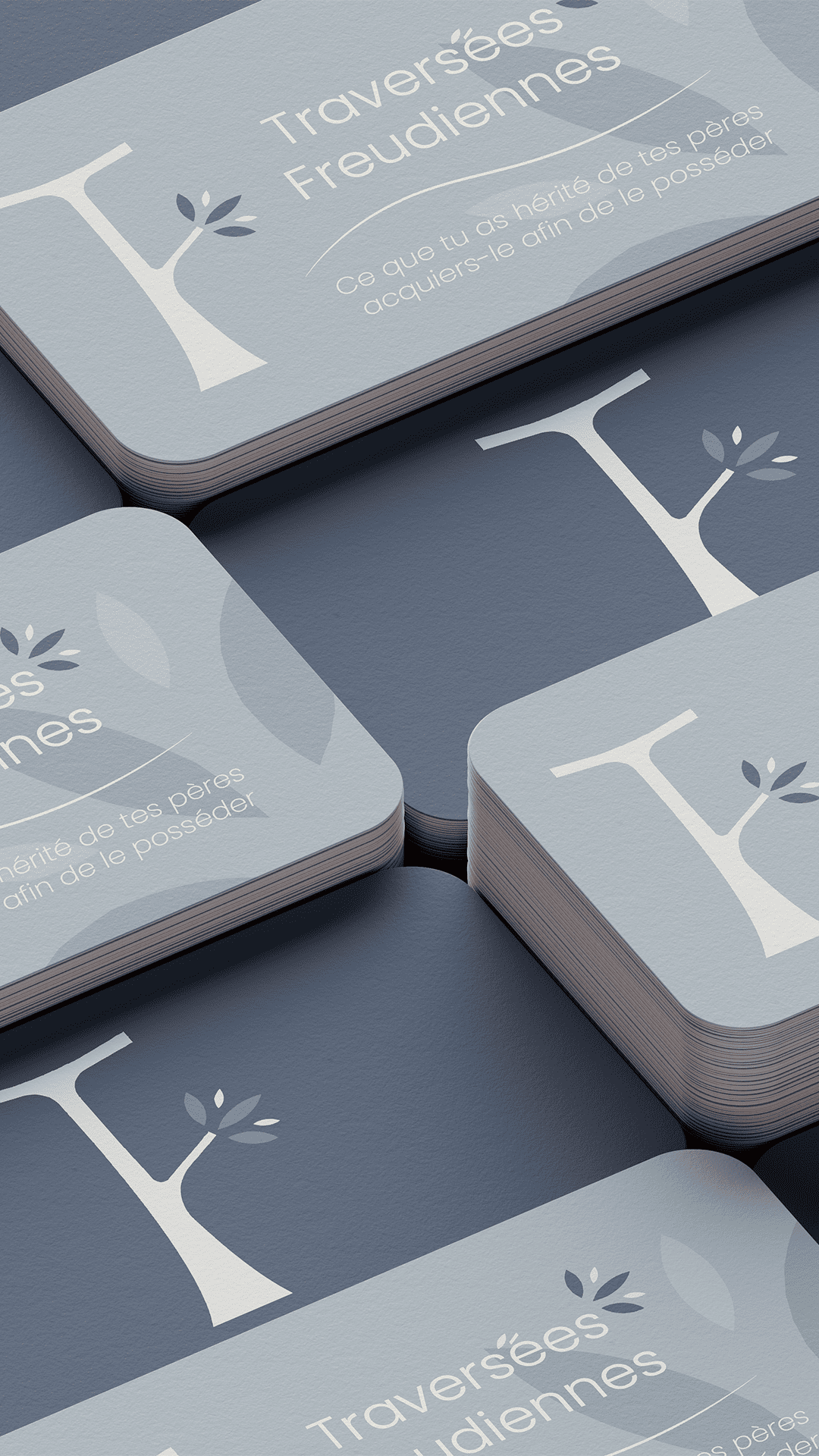 La psychanalyse est une discipline de la nuance. L’identité graphique de Traversées Freudiennes devait refléter cette subtilité. Nous avons travaillé sur un univers visuel minimaliste où chaque élément a sa place :